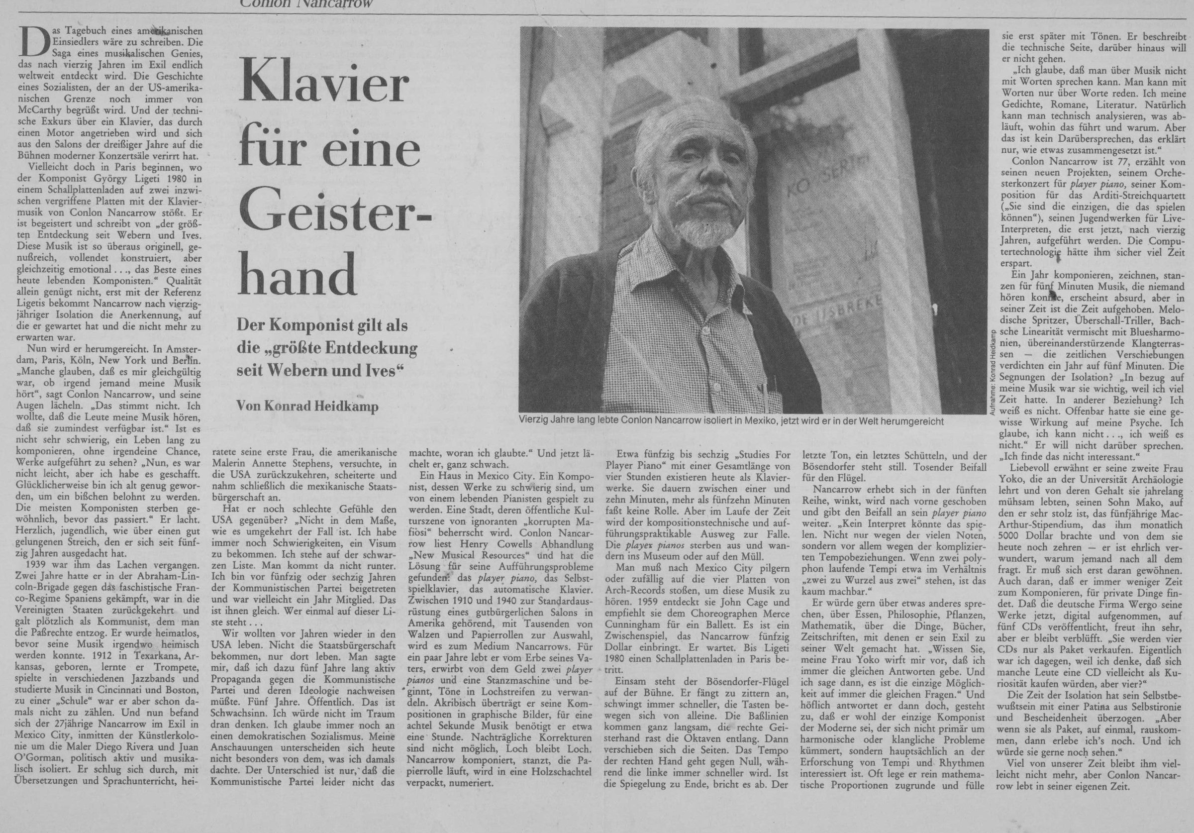 Article on Conlon Nancarrow. German publication, date unknown.