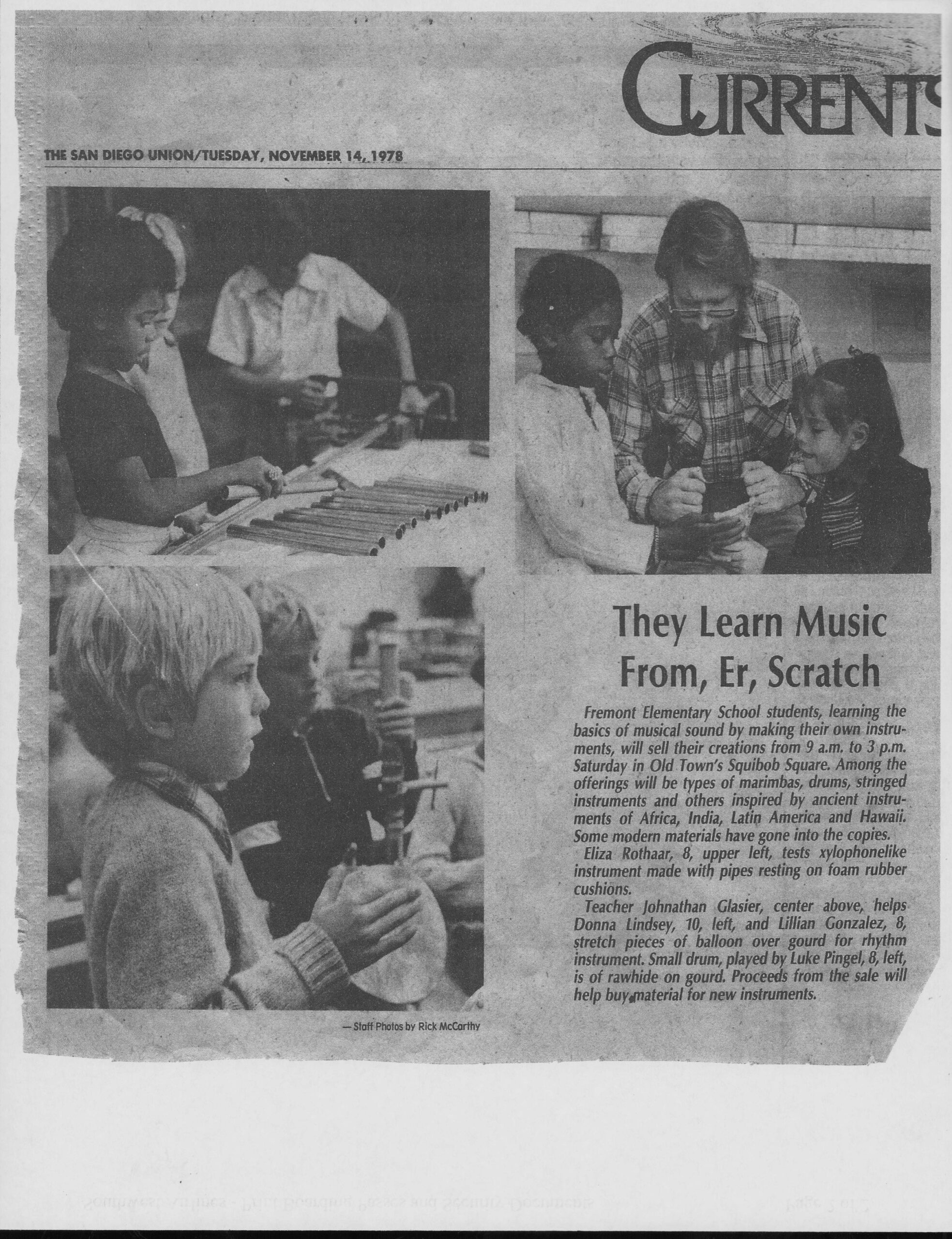 San Diego Union. ‘They Learn from Scratch: J. Glasier at Fremont Elementary.’ November 14, 1978.