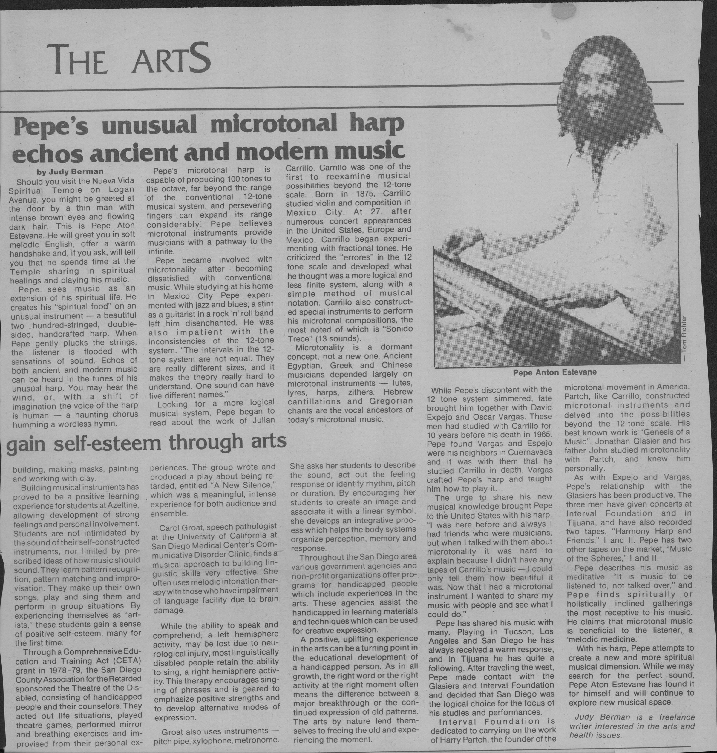 Judy Berman. ‘Pepe Estavane and his Carrillo Harp.’ Holistic Living News, 1981.