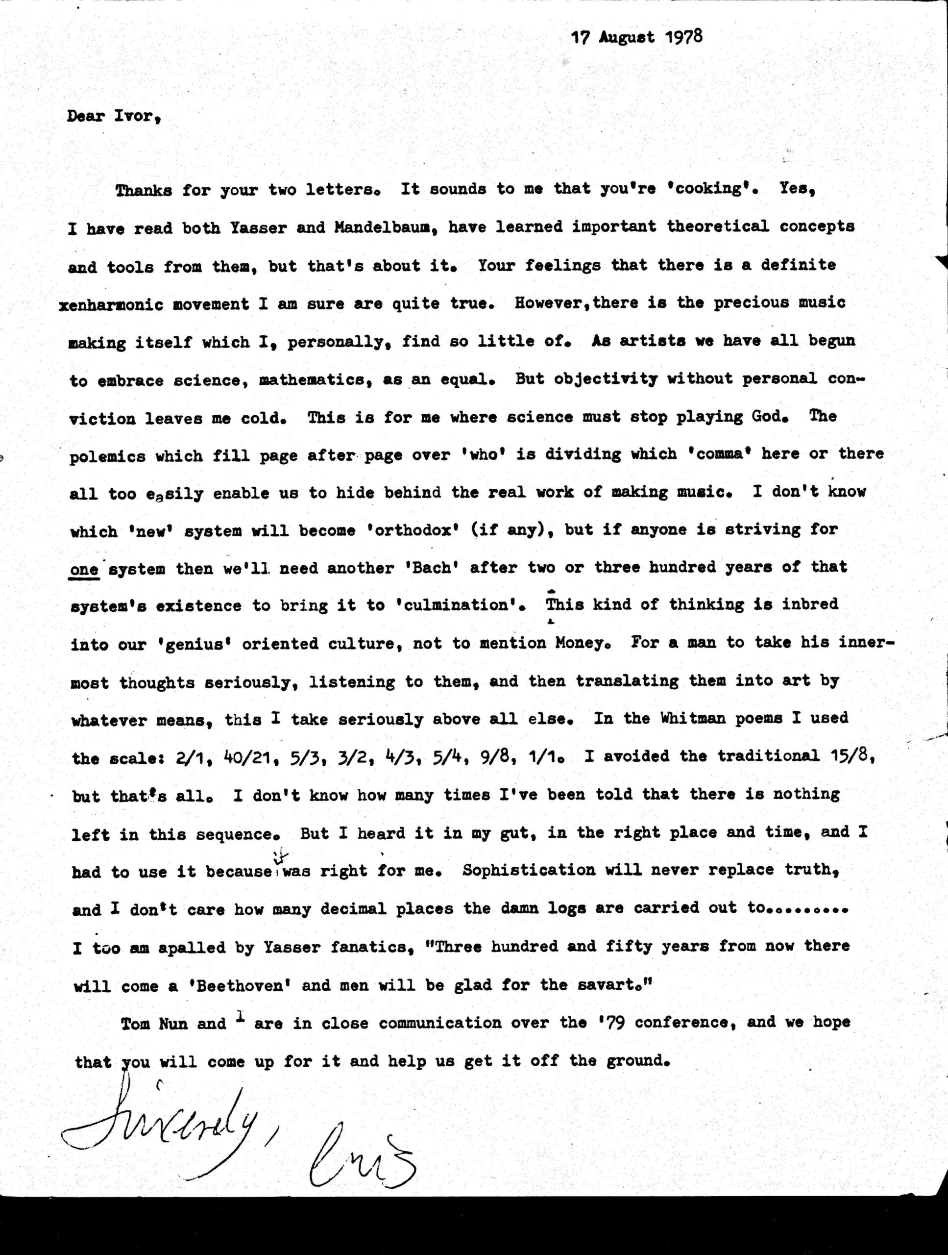 Letter from Cris Forster to Ivor Darreg, August 1978 Cris Forster → Ivor Darreg, 1978 Aug