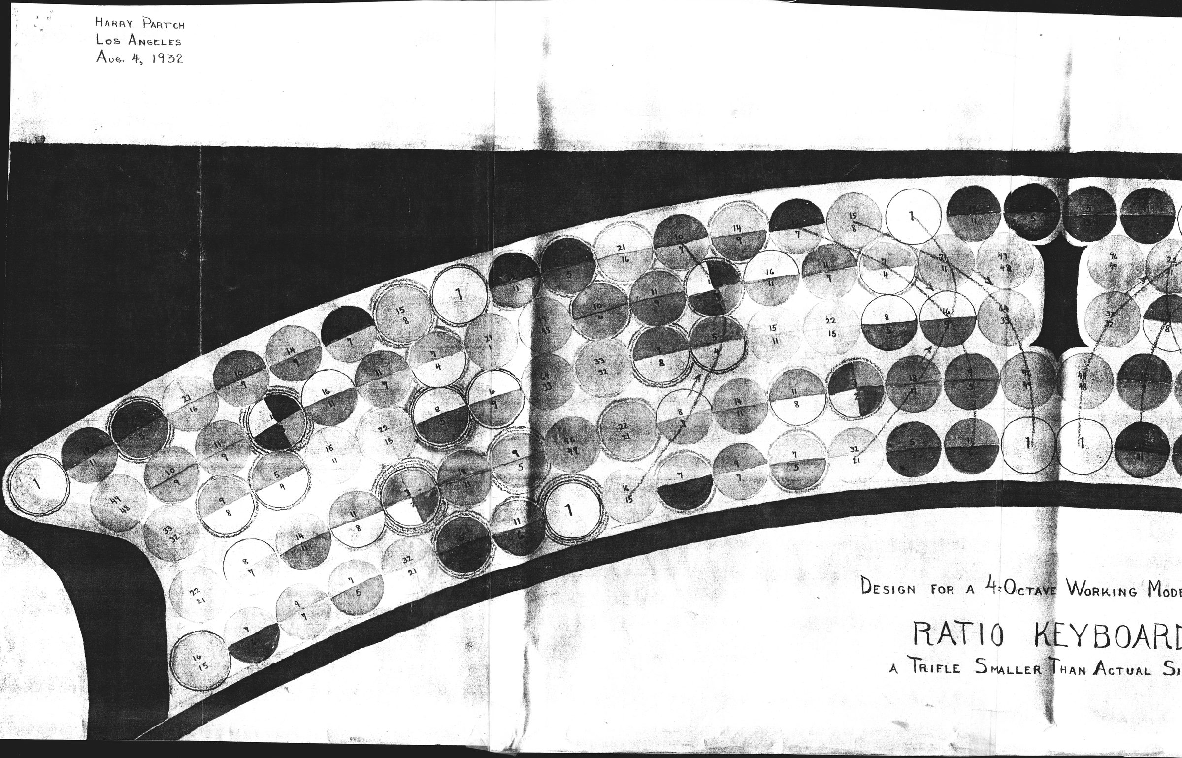 Ratio Keyboard by Harry Partch (left half), 1932 1932 Aug
