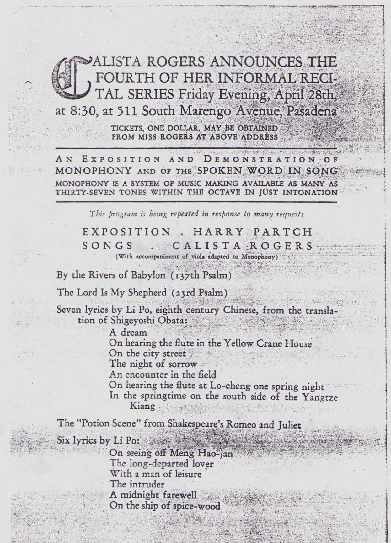 Harry Partch Article. Interval Journal IV no. 2, 1932 Eleanor Barnes, 1932 Jan