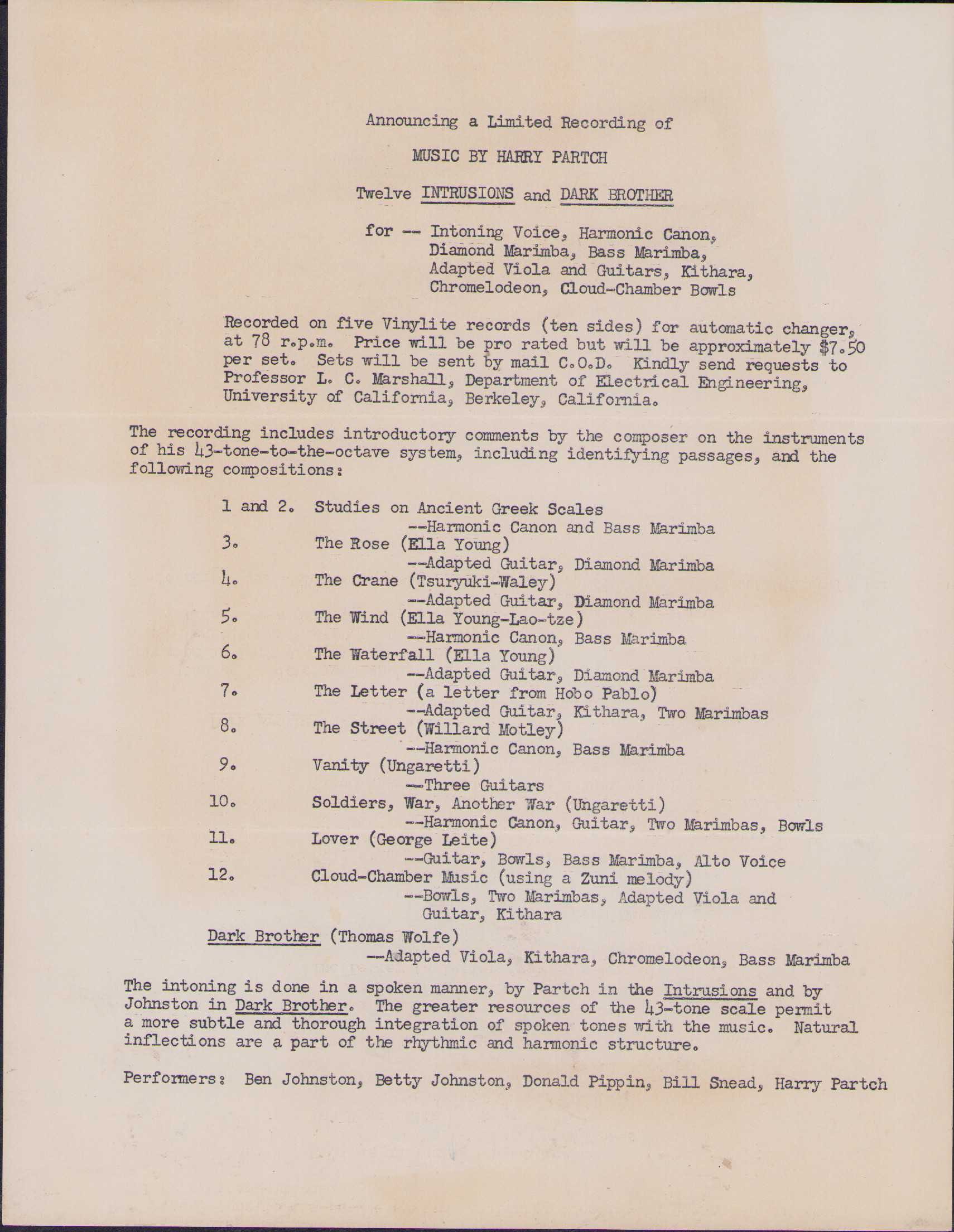 Harry Partch Gems From My Scrapbook 1930–1957, 10 pages Harry Partch, 1957 Jan