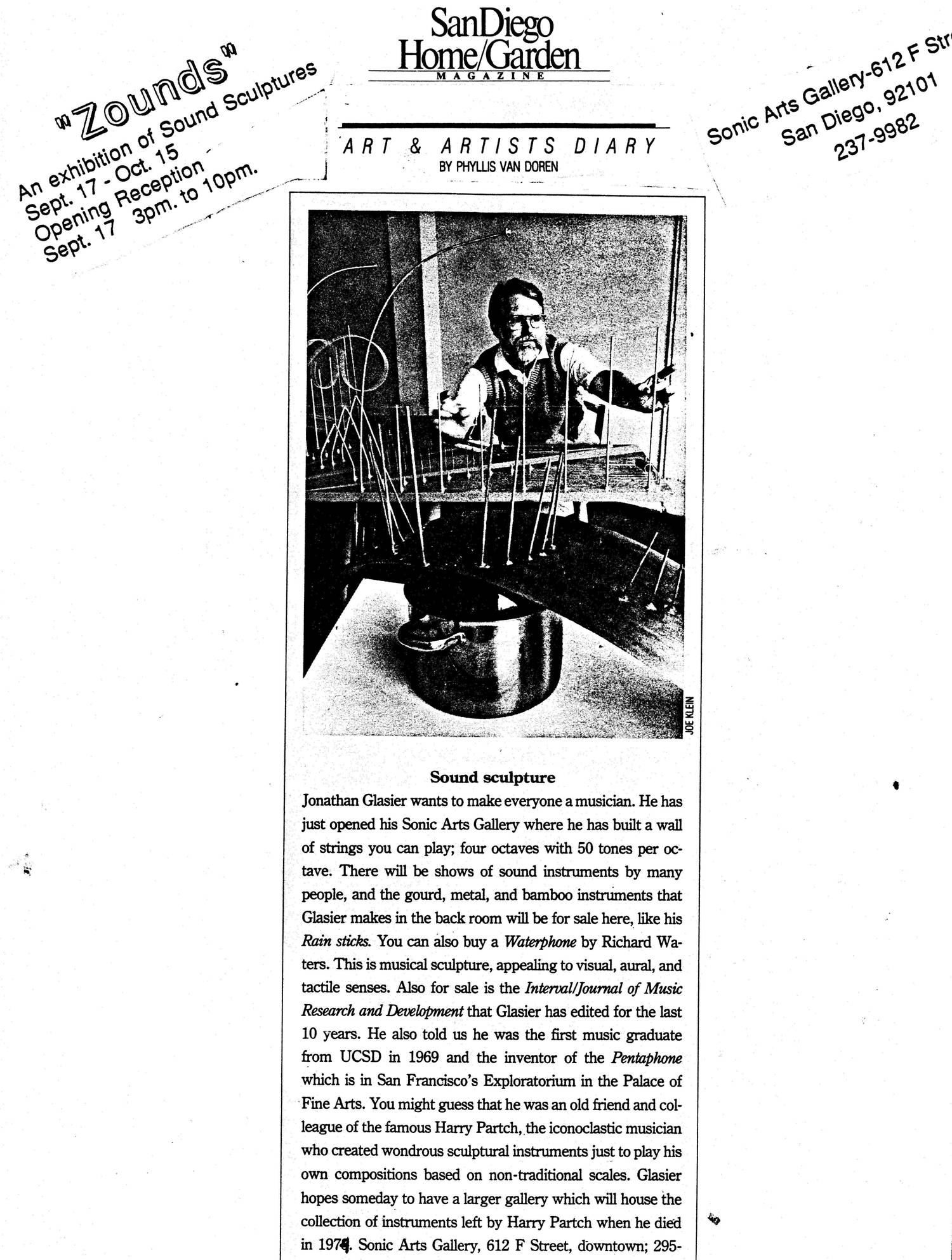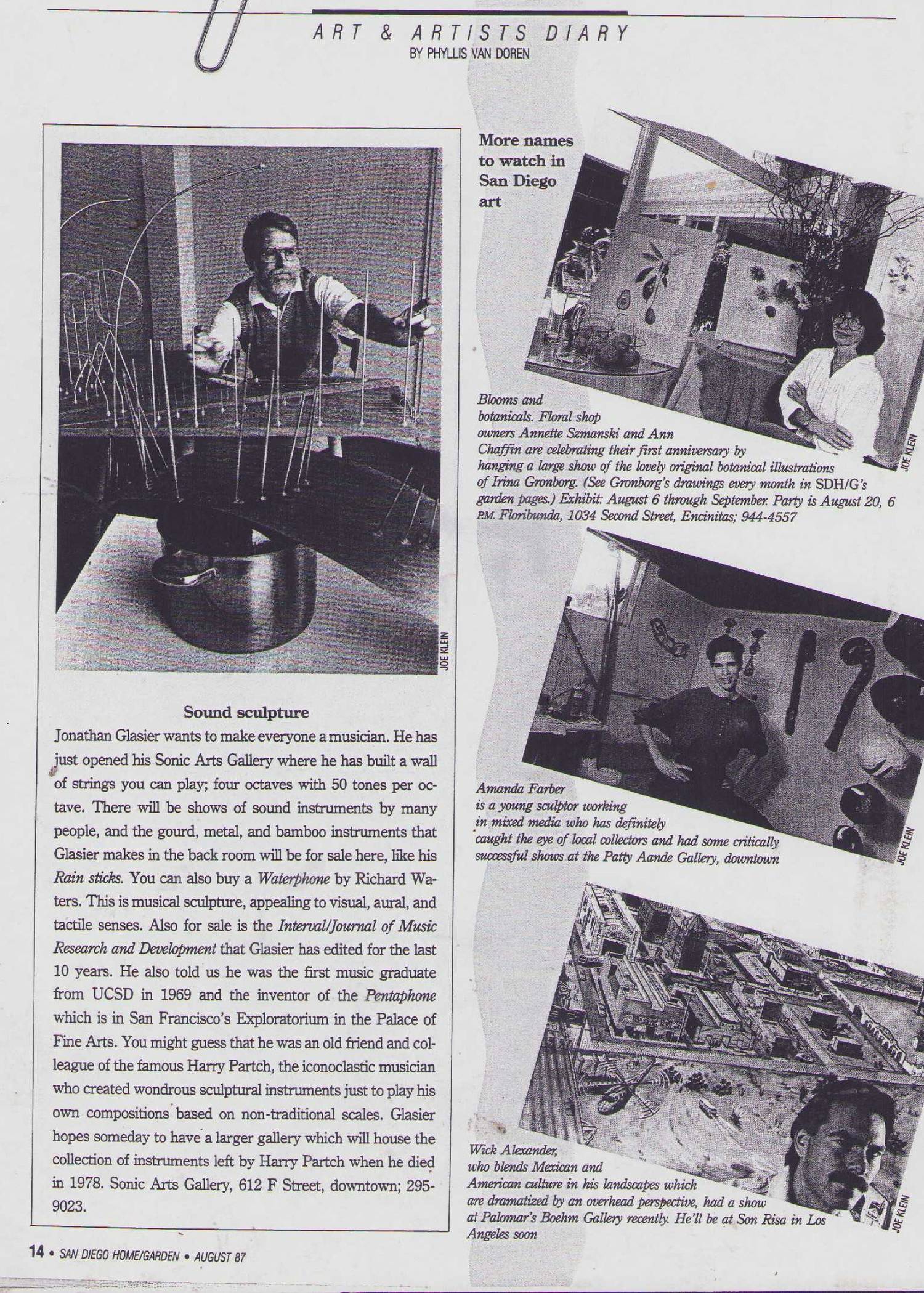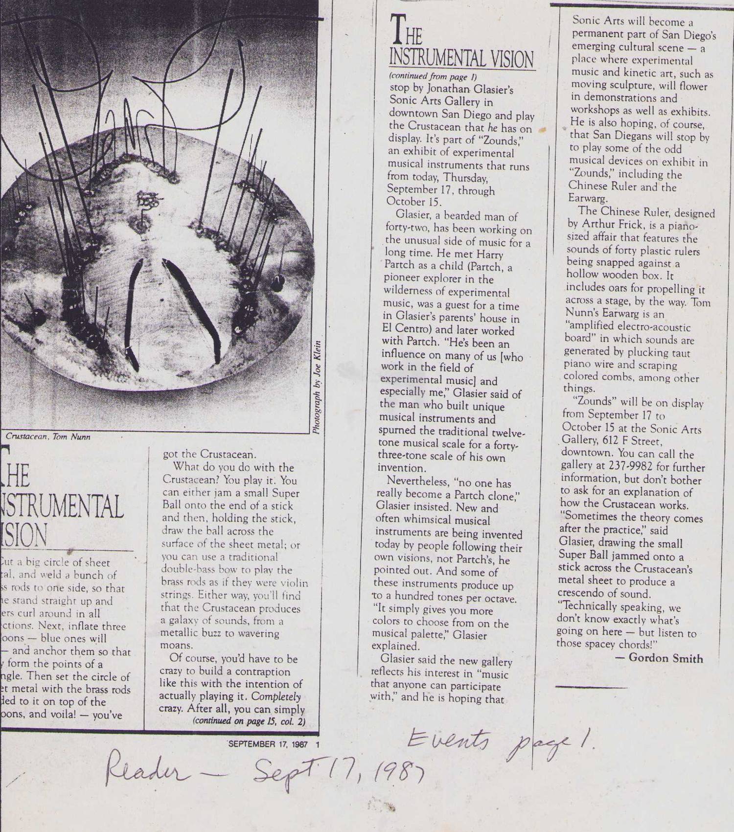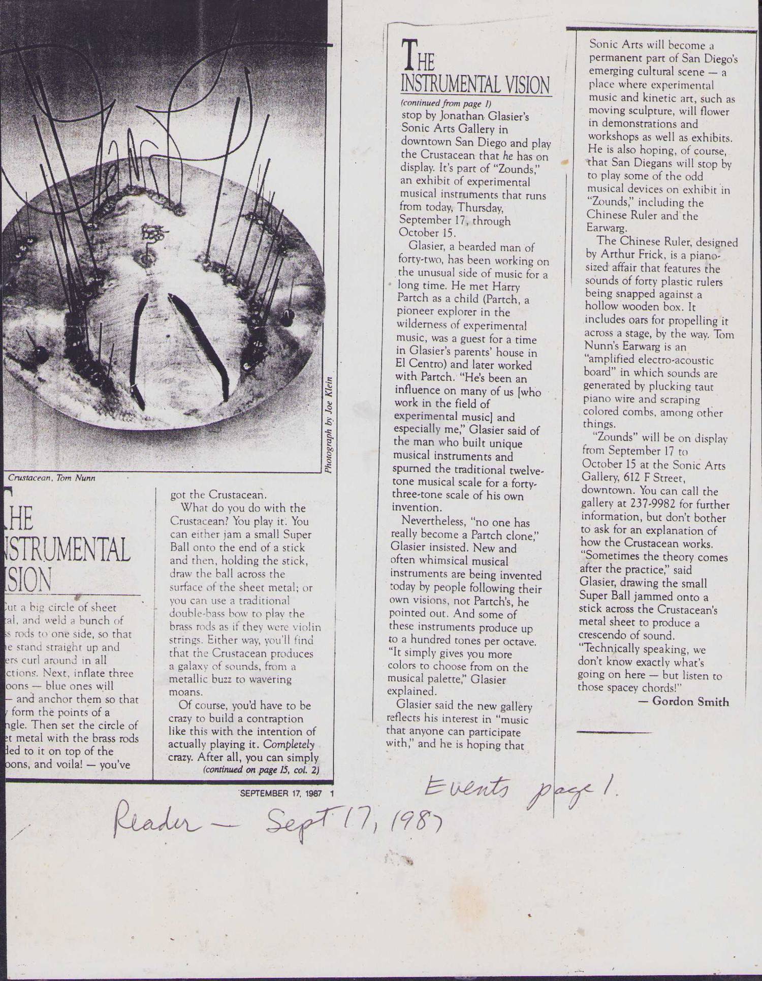 Harry Partch exhibit at Grossmont College, San Diego Union, February 1987 Tony Doubek, 1987 Feb