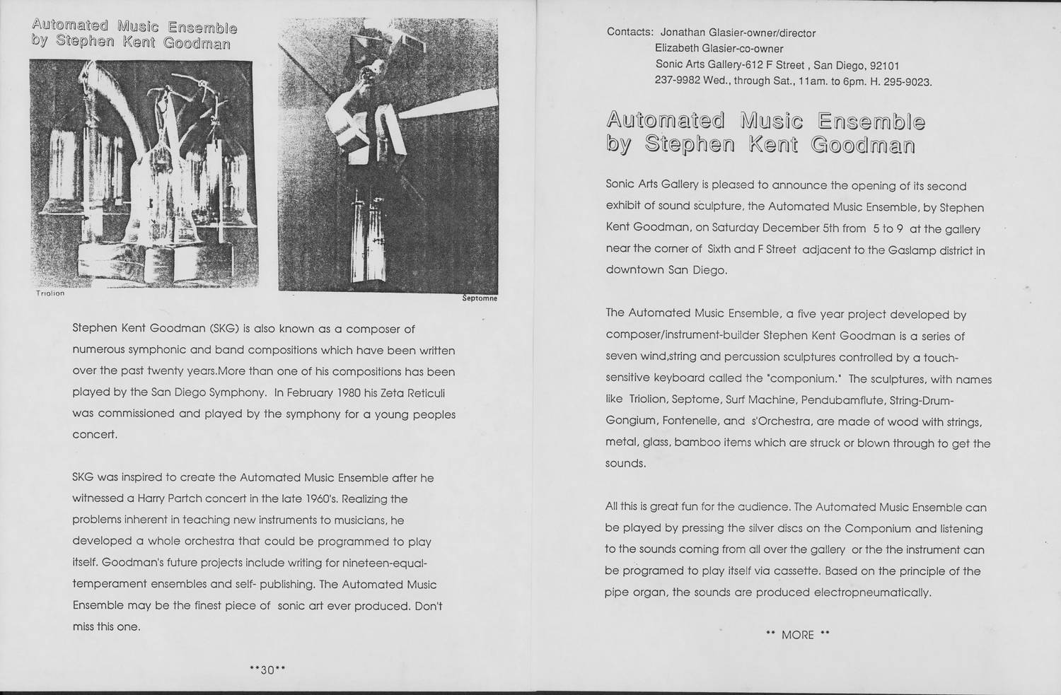 Center for Music Experiment by William Justin, Community Arts San Diego Vol. 2 #9, 1980 William Justin, 1980 Oct