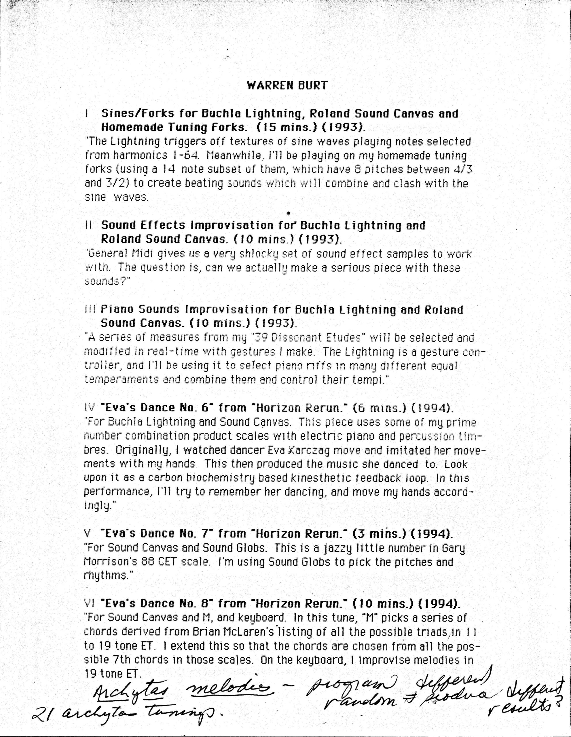 Warren Burt letter to Jonathan D Glasier with pitch grid Warren Burt → Jonathan Glasier, 1988 Aug