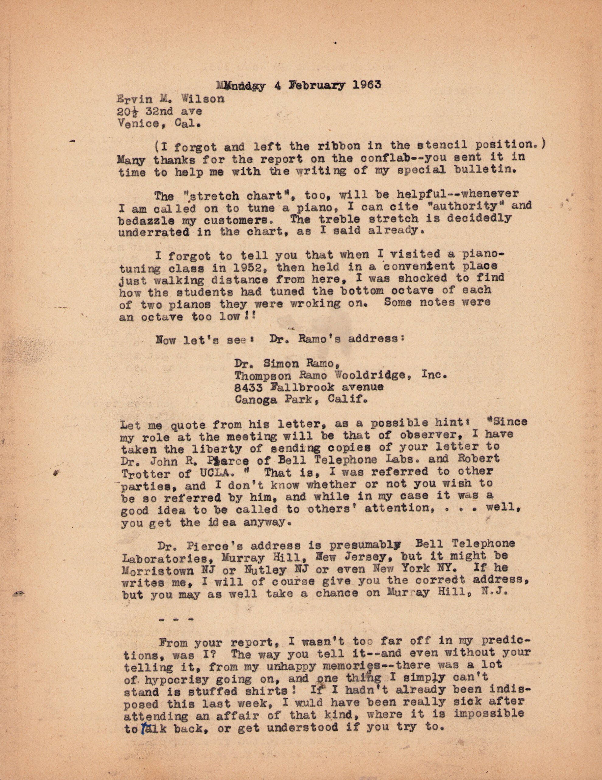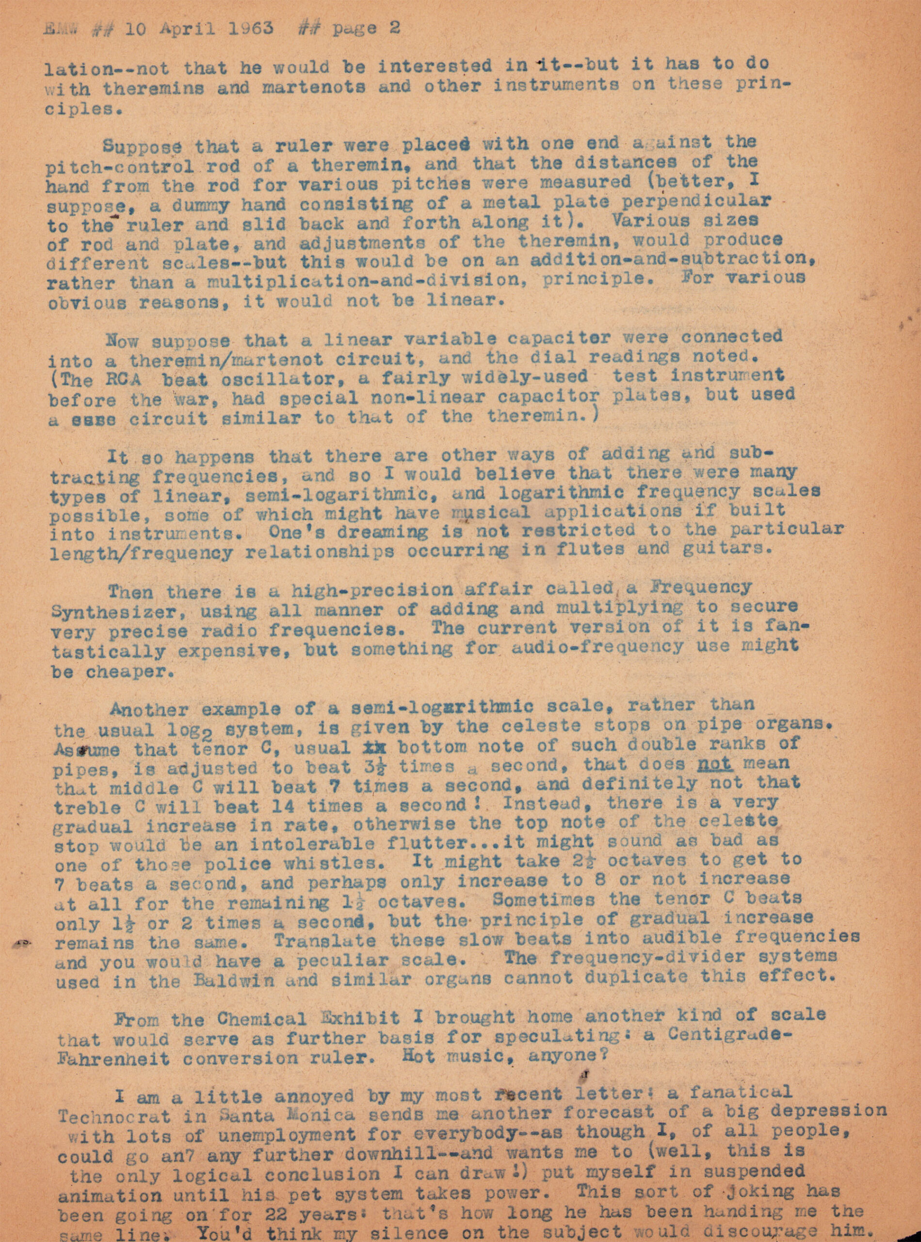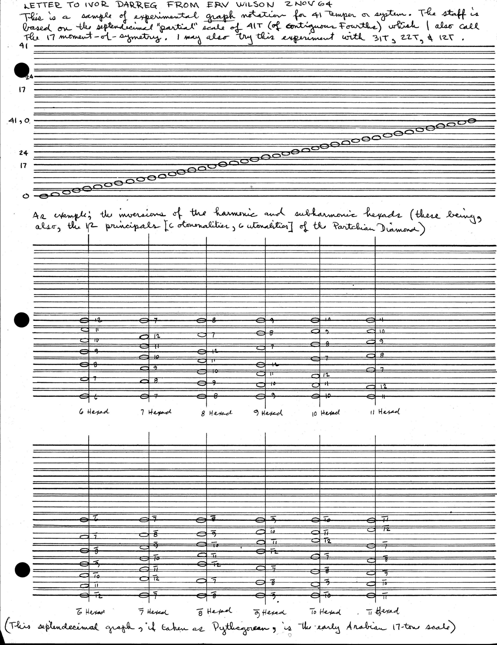 Letter from Erv Wilson to Ivor Darreg. Erv Wilson, 1963