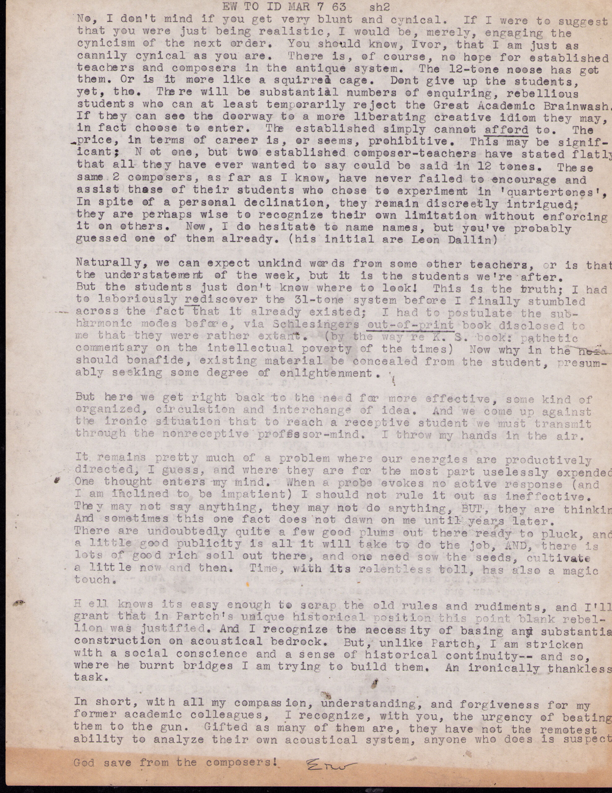 Letter from Erv Wilson to Ivor Darreg. Erv Wilson, 1963-03-07