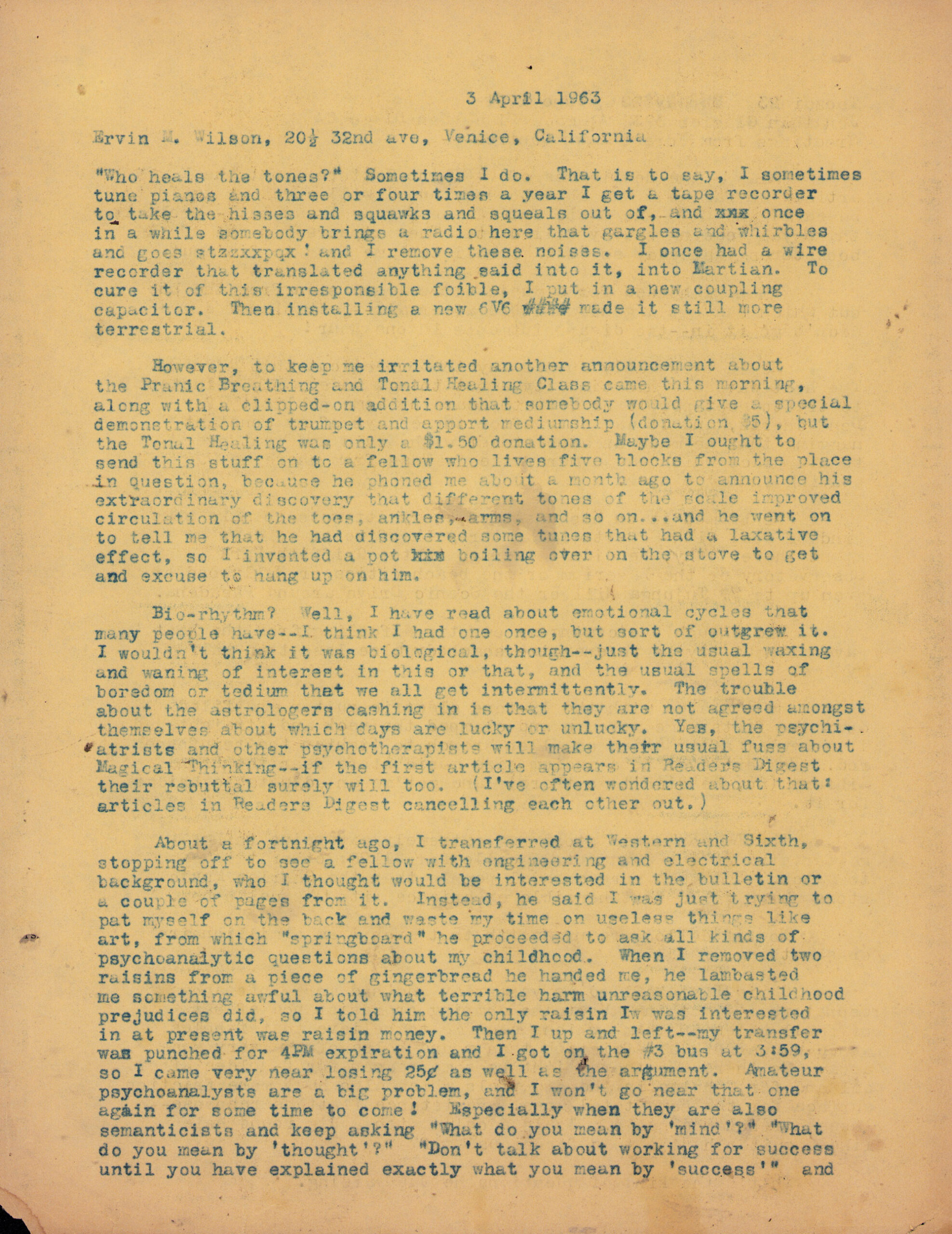 Letter from Ivor Darreg to Erv Wilson. Ivor Darreg, 1963-04-03