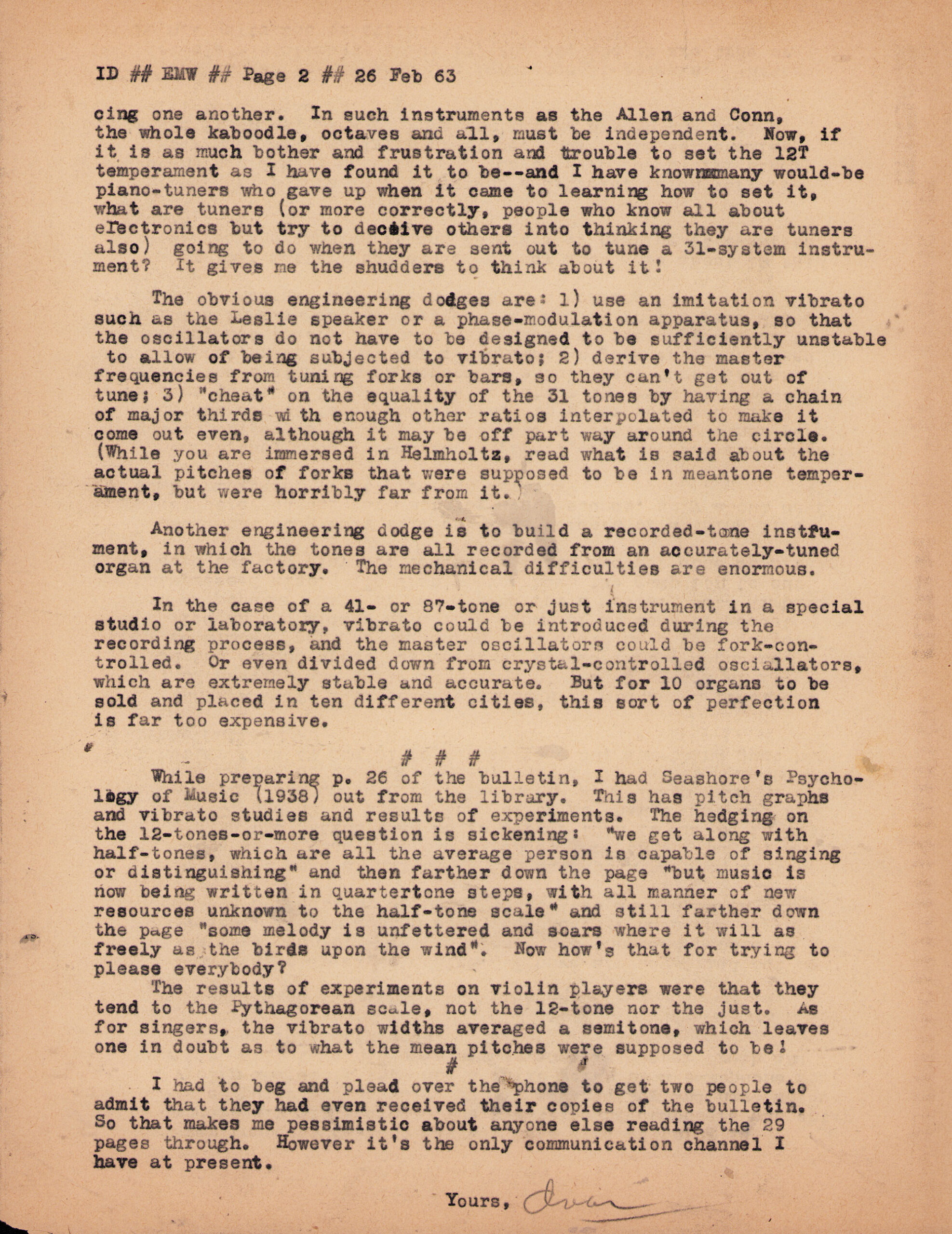 Letter from Ivor Darreg to Erv Wilson, p2. Ivor Darreg, 1963-01-28